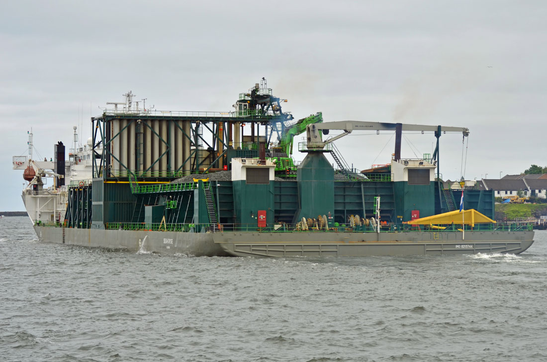 Yes Seahorse collected a load of stone from Fitnes and has gone down to the Breagh Pipeline to deposit her cargo into the trench to cover the pipeline. Fines is to load the remainder of her cargo into Flintstone which arrived in the Tyne early doors this morning.