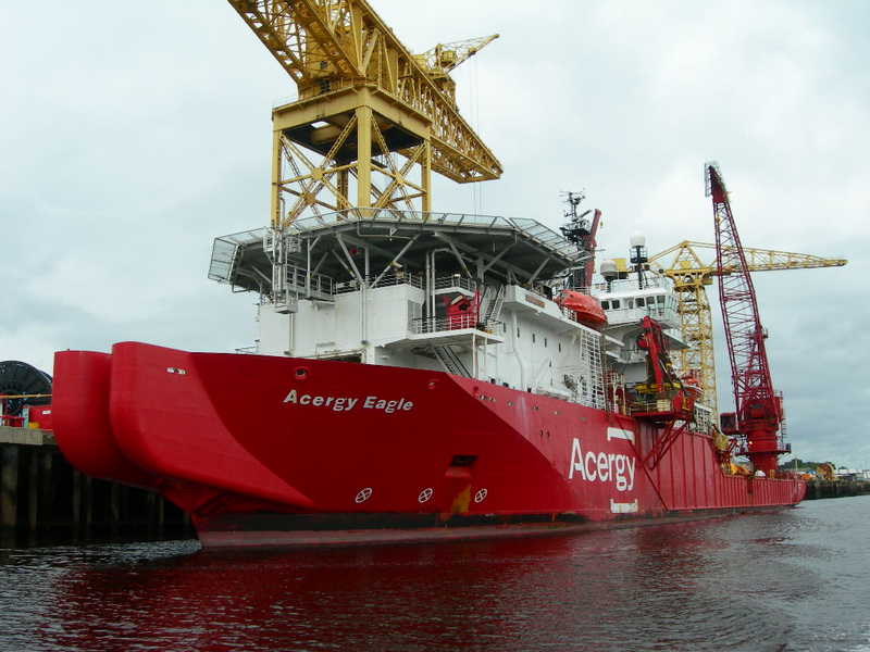 Tow out of the Amadeus Hess AH 001 with Toisa Daring on the bow