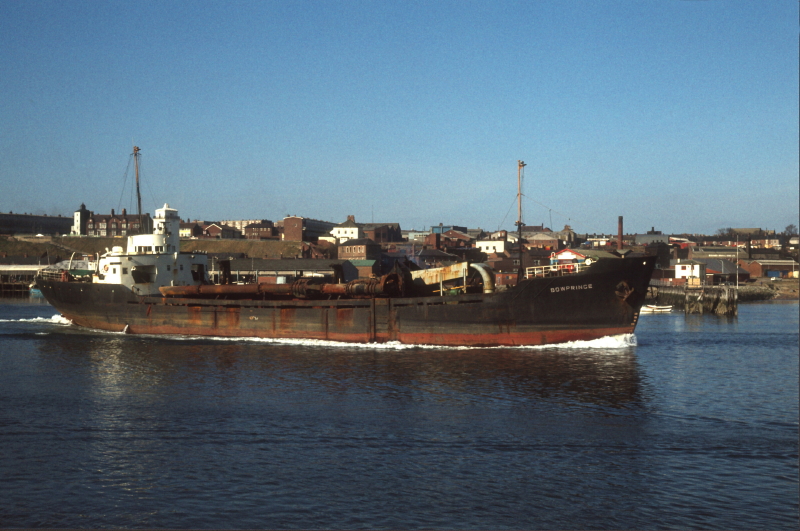 Outbound past the Fish Quay and the lifeboat station on 1 March 1980.