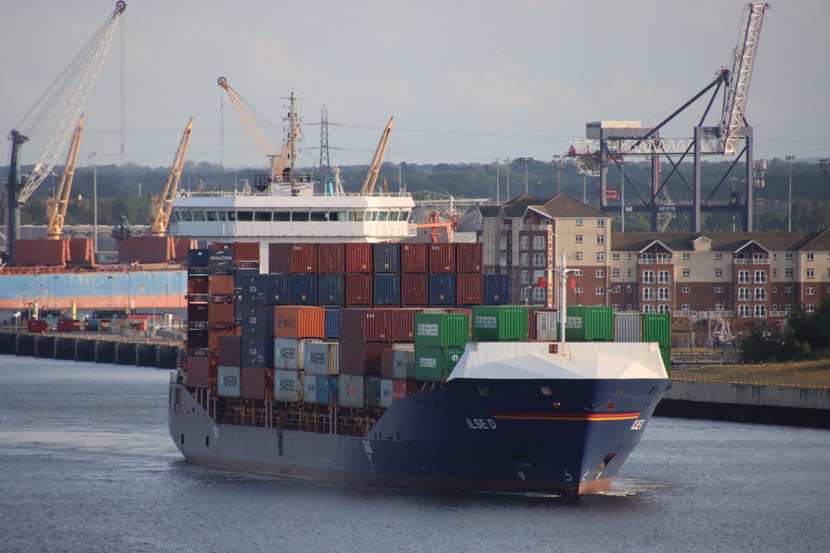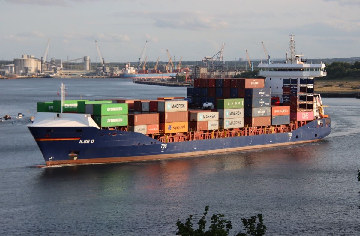 Container ship ILSE D inwards to the Tyne Container Terminal 25/06/2025. Photos by Richard Athey.