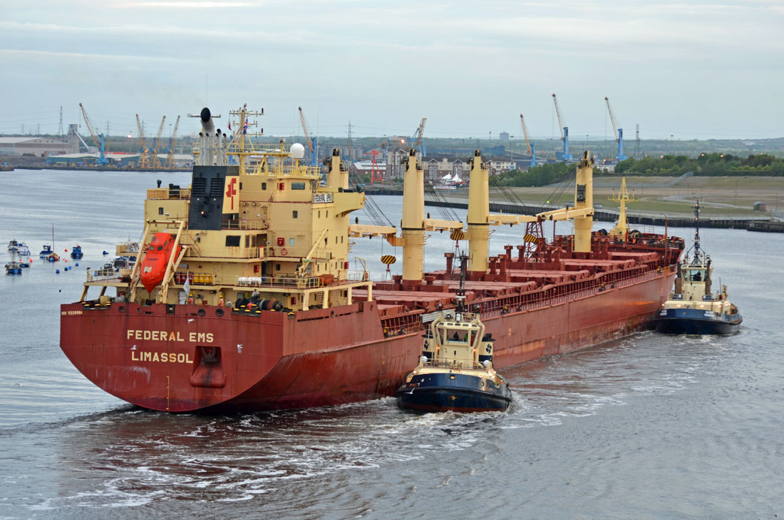 FEDERAL EMS inbound to the Port of Tyne, North East of England in the evening twilight, 12th April 2012 and photographed from the High Lights North Shields.