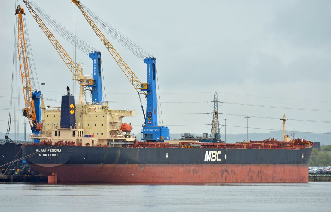 ALAM PESONA inbound to the Port of Tyne from New Orleans with a cargo of coal, 14th May 2012. Photographed from Western Quay, North Shields.