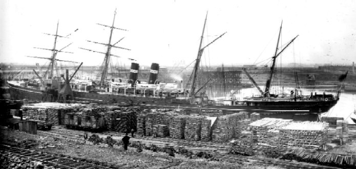 The British India liner GOLCONDA in Albert Edward Dock, North Shields in 1888.