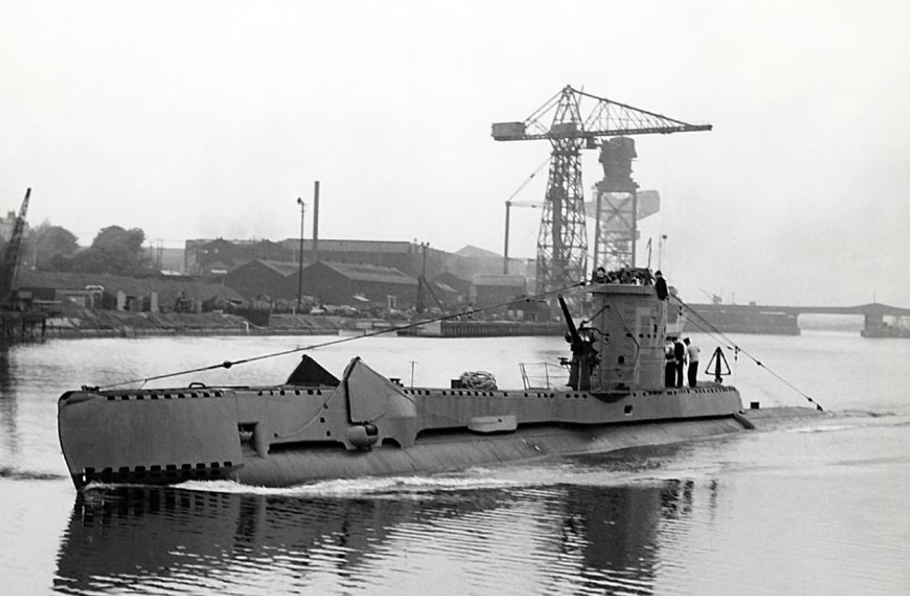 Unruly, previously named P49 but retaining that moniker as her pendant, was identical to her lost sister P48, an image of which shows the latter as built running trials 6 months prior to her loss, those men visible almost certainly going down with her... V A Barrow from october 1940 were constructing 2 U class boats per slip, P49 with P47 which became the Dutch Dolfijn while P48 paired with P51, Unseen, in each case one of the pair was laid down a few days prior to the second then once the first was launched all the paraphernalia needed had to be re set for the second boat to take to the water. Some days later the next pair would occupy the vacant slip.