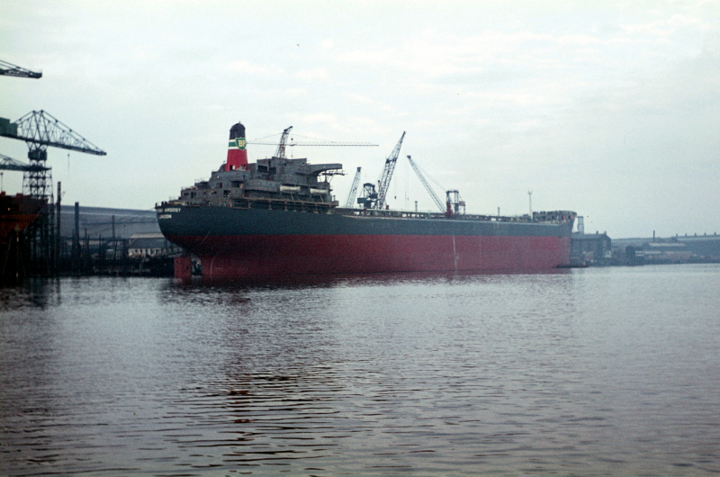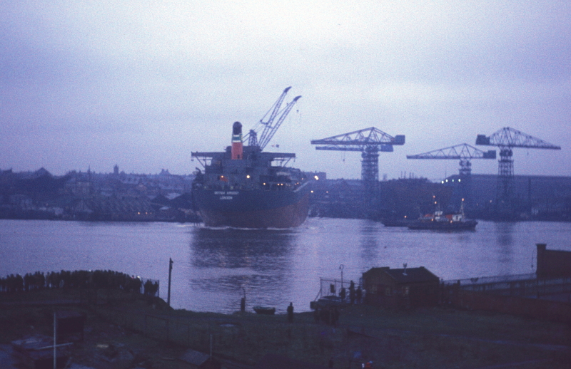 Unusually for a large tanker British Argosy returned to the river after trials, as a result of the seamen's strike that took place in May 1966. I think that she became the largest vessel to enter the river up until then.