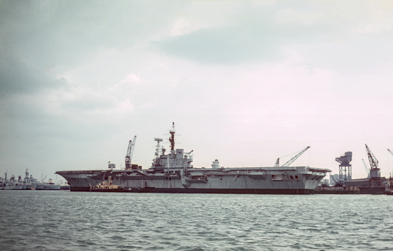 No, Fife was not Tyne-built, coming from Fairfield in 1966 and Centaur came from H&W in 1953 – but just visible on the extreme left of the picture of Fife, and just visible over the flight deck on the picture of Centaur, both taken at Portsmouth in August 1966, are the upperworks of the incomplete aircraft carrier Leviathan, launched at Wallsend on 7 June 1945. After gradually being cannibalised for spares, including boilers to refit the Dutch Karel Doorman (formerly HMS Venerable), she went to the breakers in 1968.