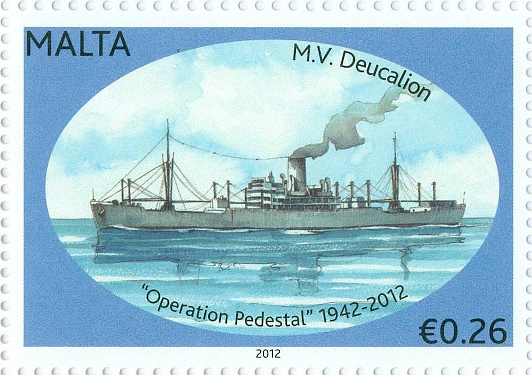 Operation Pedestal was a determined effort to help relieve Malta with the Merchant ships comprising Convoy WS21. Deucalion, Master, Captain Ramsey Brown, was amongst the losses. Despite her damage she got underway escorted by Bramham but was duly attacked at 2130 in the dark and poor visibility by 2 torpedo armed Heinkel He.III, believed from 6/KG.26 and damaged further, stopped and on fire when all her crew were removed to Bramham which fired a depth charge at her, encouraging her fires to assist her sinking which was not witnessed. Bramham then made off at speed to continue with her escort duties and assist the tanker Ohio to Malta.