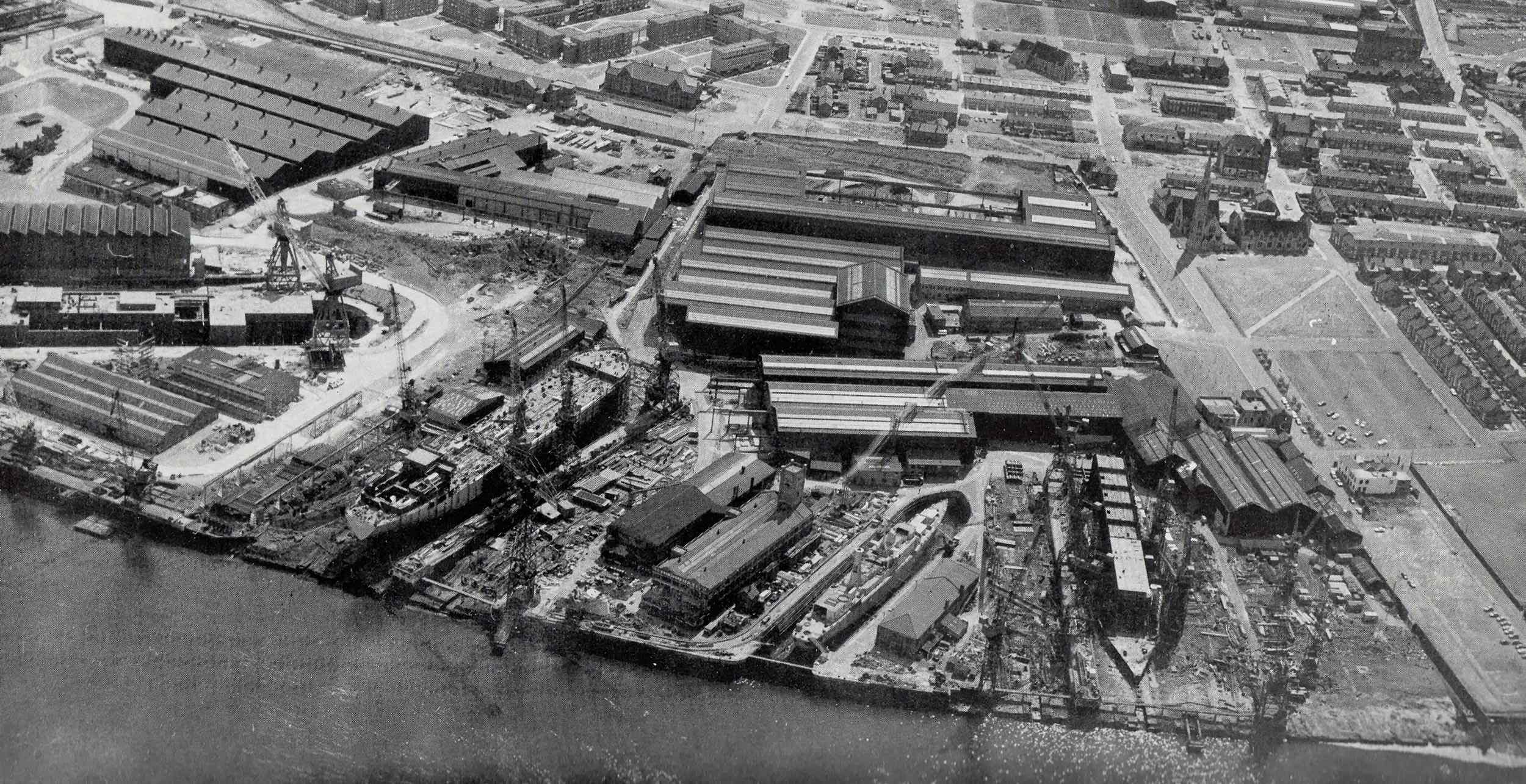 Kevin Blair sent me this aerial view of Hawthorn Leslie (Swan Hunter - Hebburn) taken from the top of his tall ladder in July 1976.