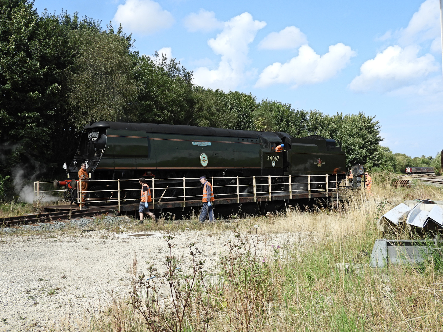 .... prior to the above, we took a worthwhile taxi ride to catch her on the turntable, easily viewed through a pallisade fence at the end of the Toolstation car park off Seamer Road. An interesting operation, powered by a quite small electric motor!