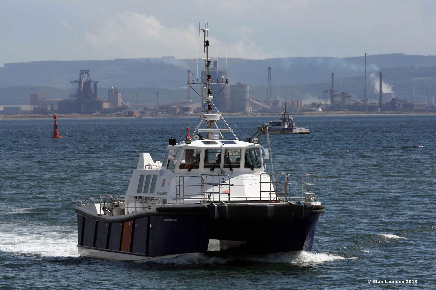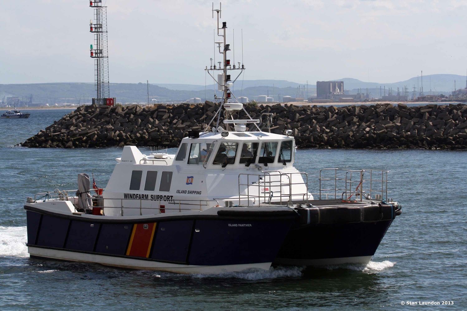 The wind farm support vessel ISLAND PANTHER arriving in Hartlepool.