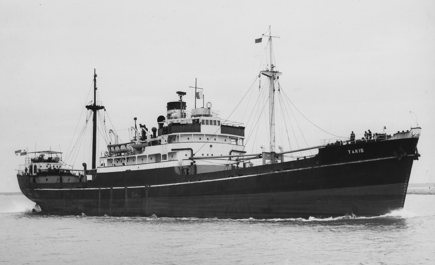 Passing Lloyds Hailing Station at North Shields TAKIS is still carrying the funnel markings of Constants (South Wales) Ltd. following her recent (1967) sale to new owners.