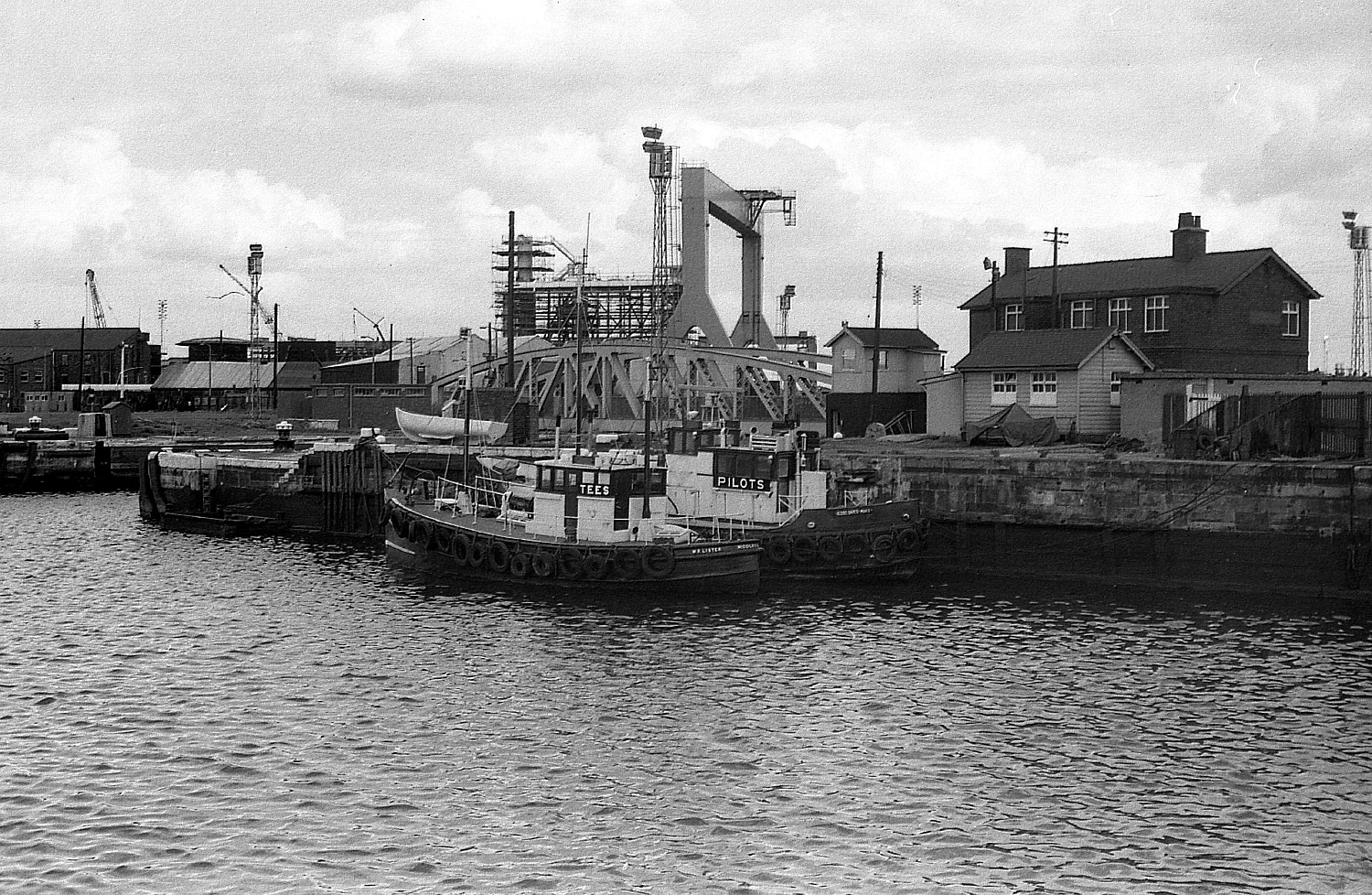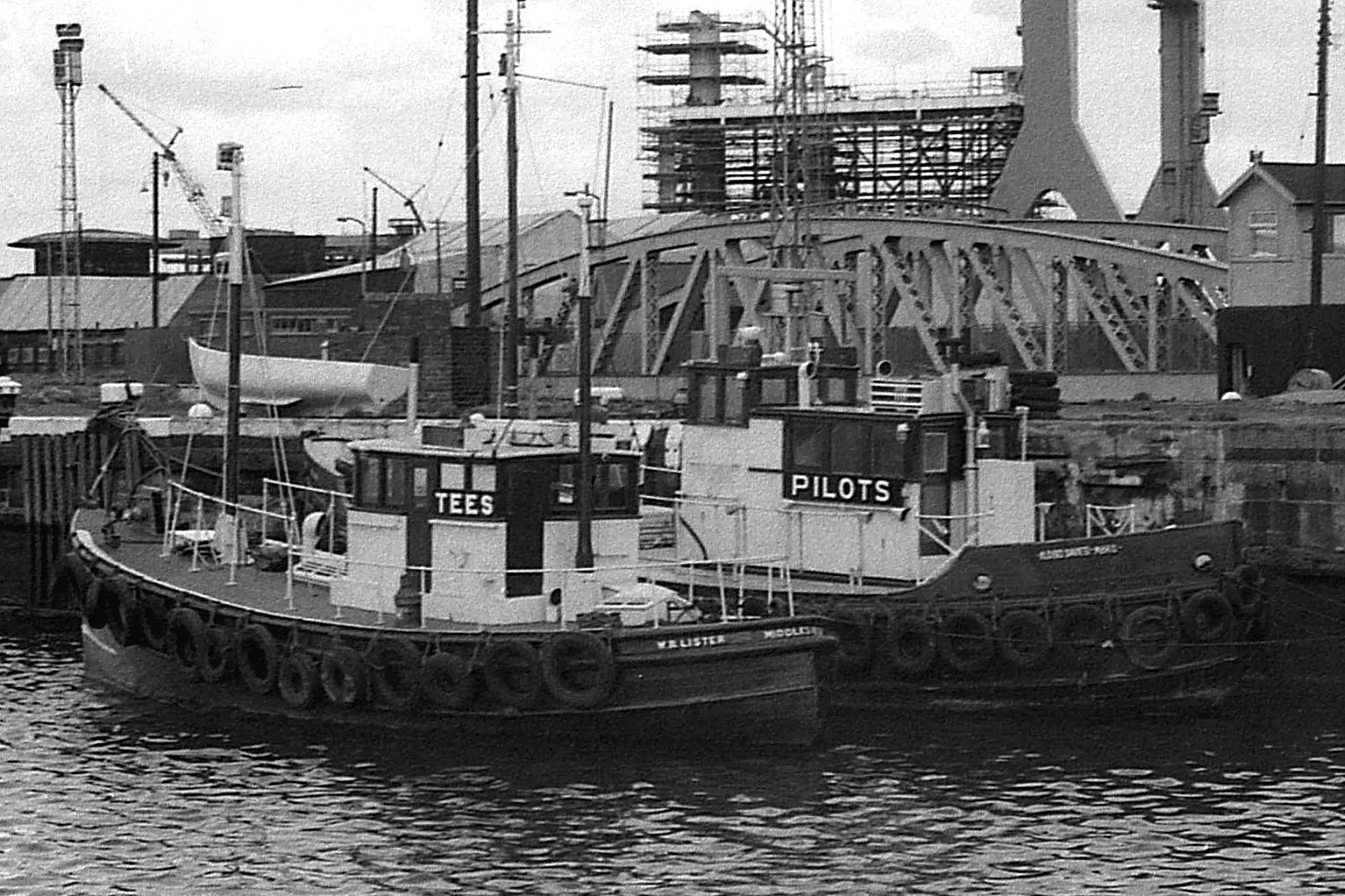 Framed in Middlesbrough Dock, two pilot cutters.