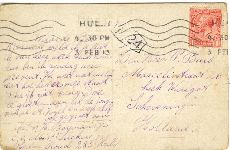Another Hull postcard sent by Bert Knorr's grandfather in February 1913.