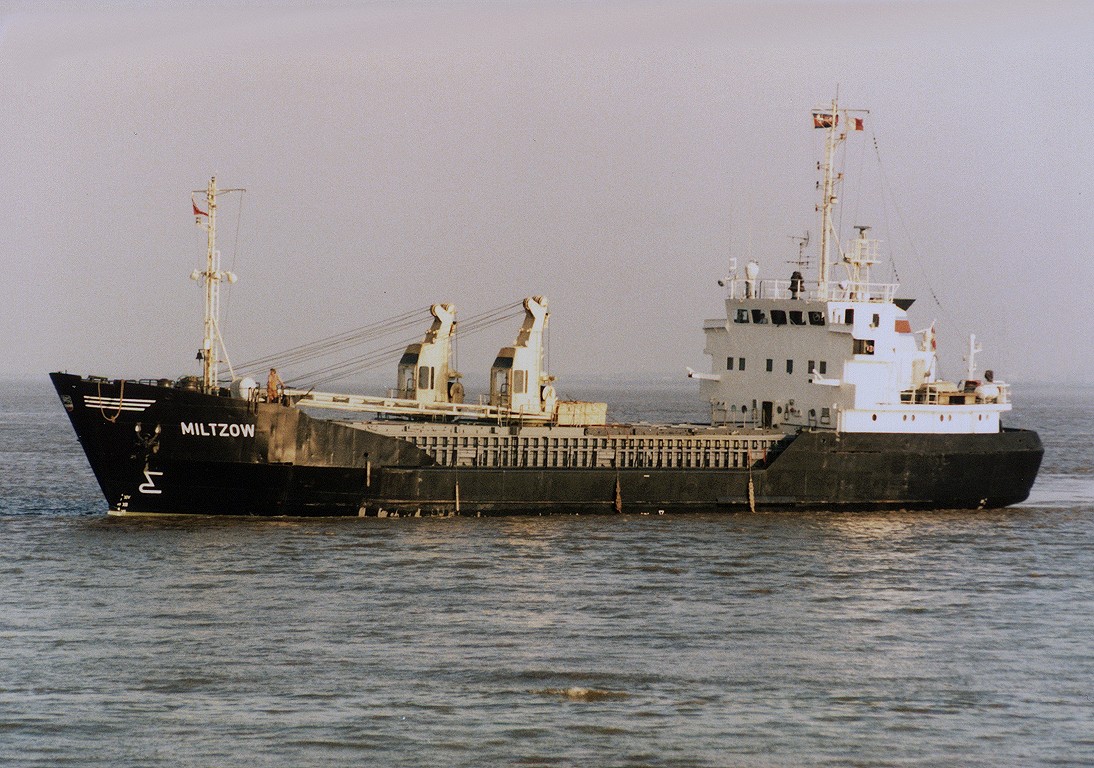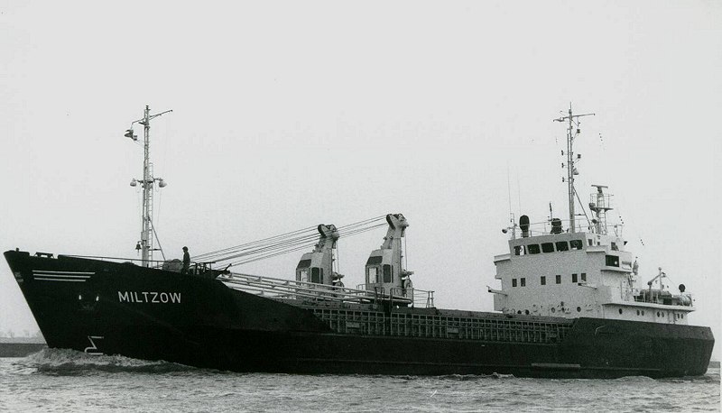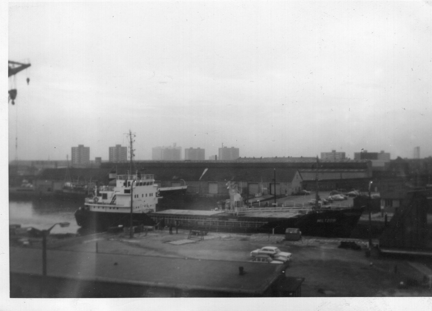 a virtually brand new (wonder if they have a new ship smell !!) MILTZOW in Albert Dock lock, September 1971