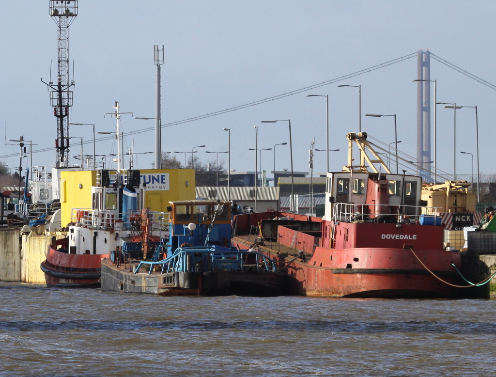 DOVEDALE in Albert Dock. Furthest from the camera is GWENDOLINE P. which arrived from Portsmouth recently under tow of BOSS TUG.