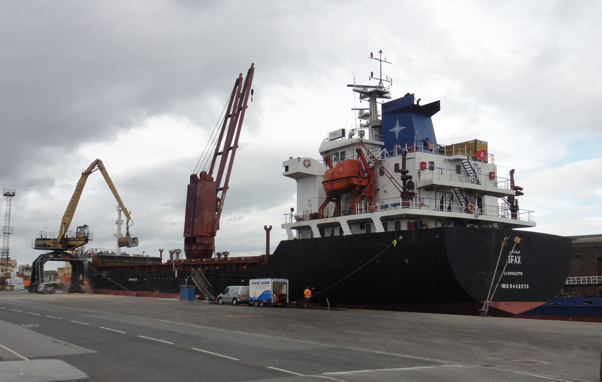 A rare Tunisian visitor to the Humber. The La Goulette-registered SFAX arrived from Antwerp on Easter Sunday. She appears to be loading some form of aggregate.
