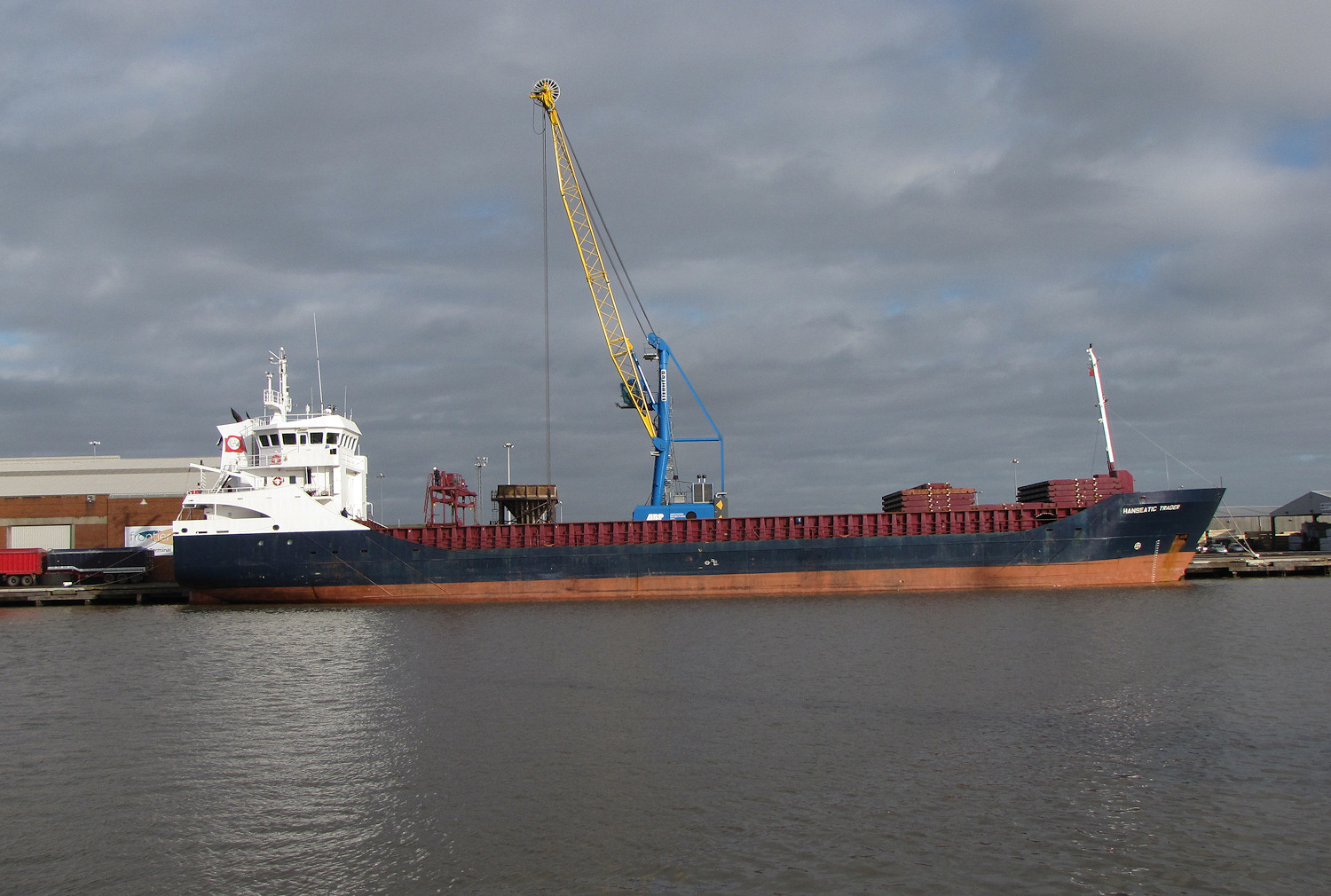 ANNE DORTE dis timber on 11 Quay and now re-loading caravans