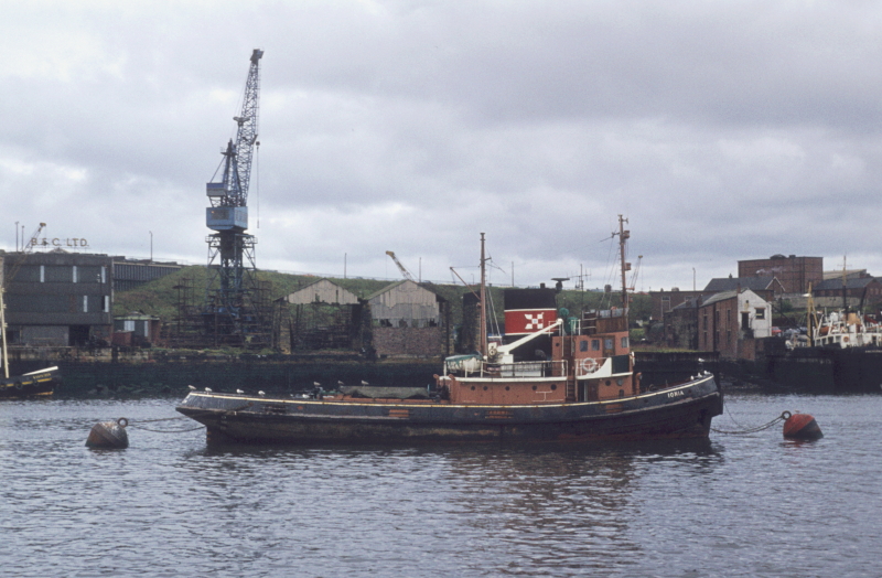 Ionia, from Henry Scarr for London Tugs in 1960, at buoys off South Shields on 20 August 1973.