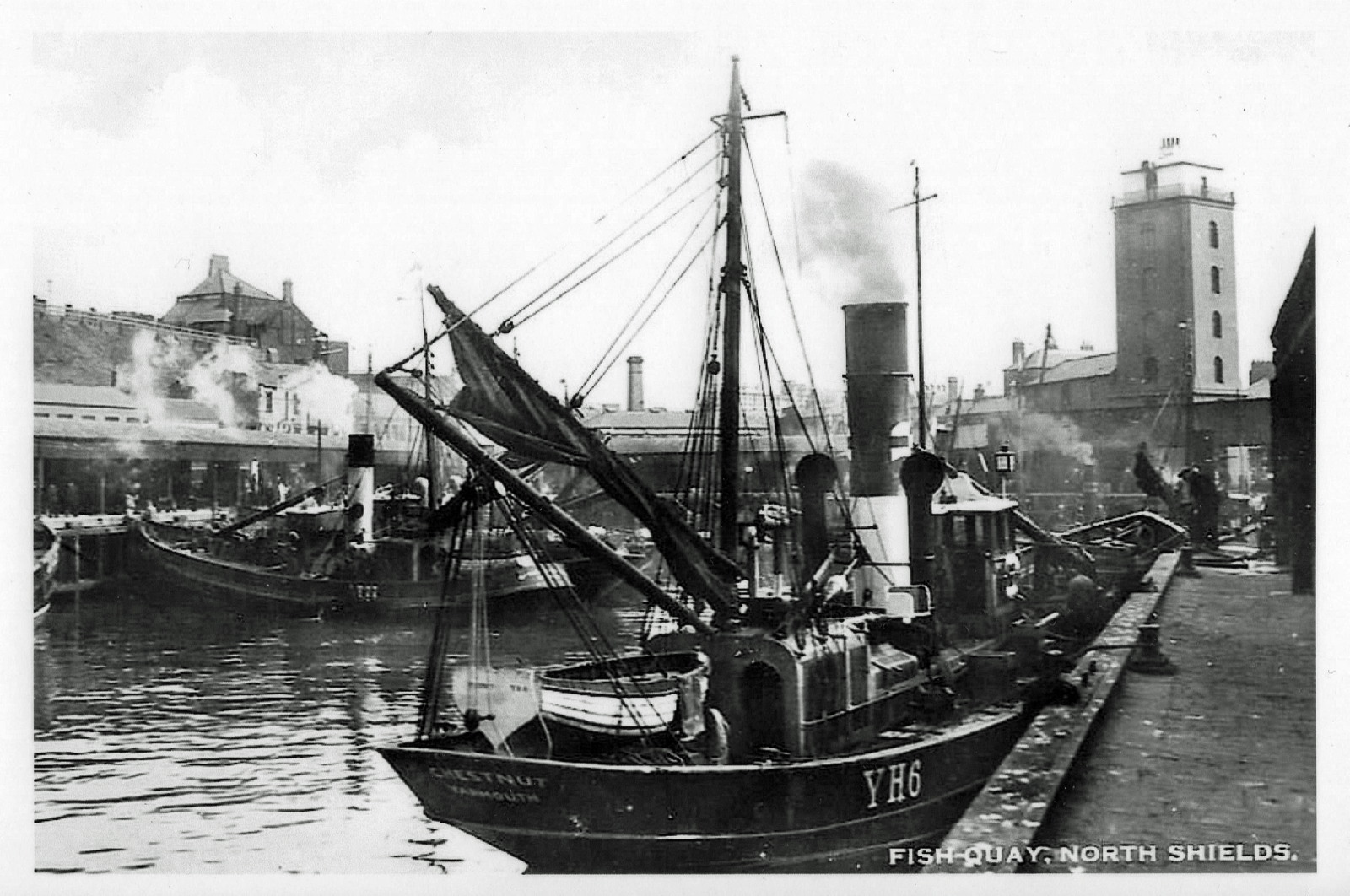 An undated postcard from Kevin shows the North Shields Fish Quay with trawler CHESTNUT YH6 in the foreground. Another trawler/drifter F27 is to the left.