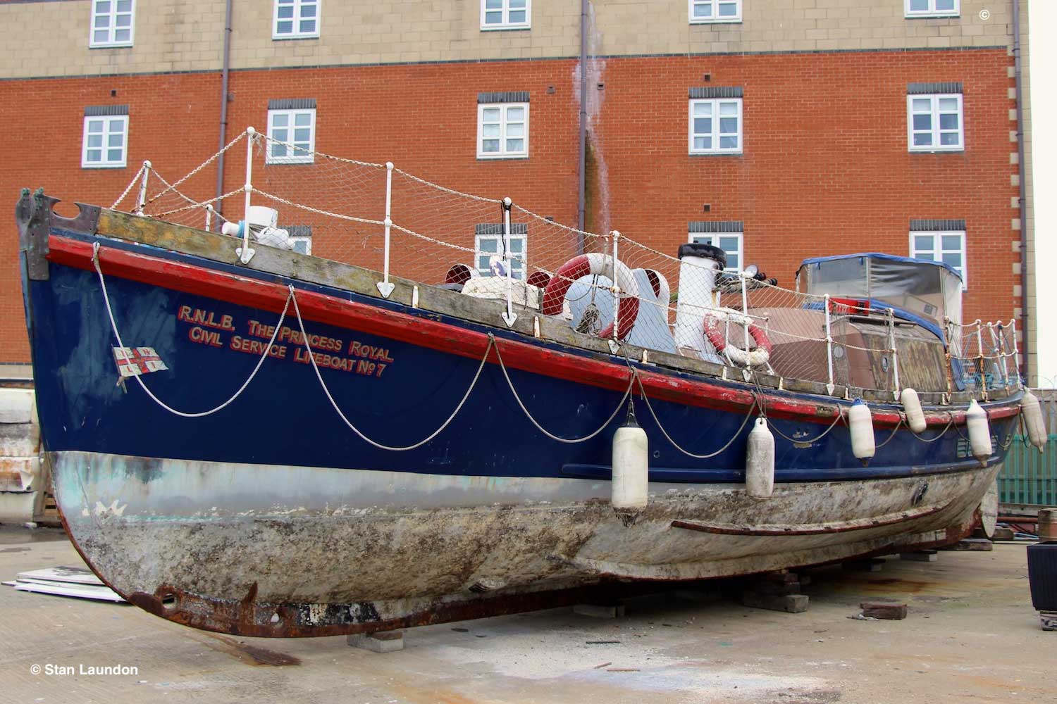 RNLB THE PRINCESS ROYAL CIVIL SERVICE LIFEBOAT No.7 in Middleton Boat Yard - and certainly looking a lot worse than she did. A shame to see her in this condition.