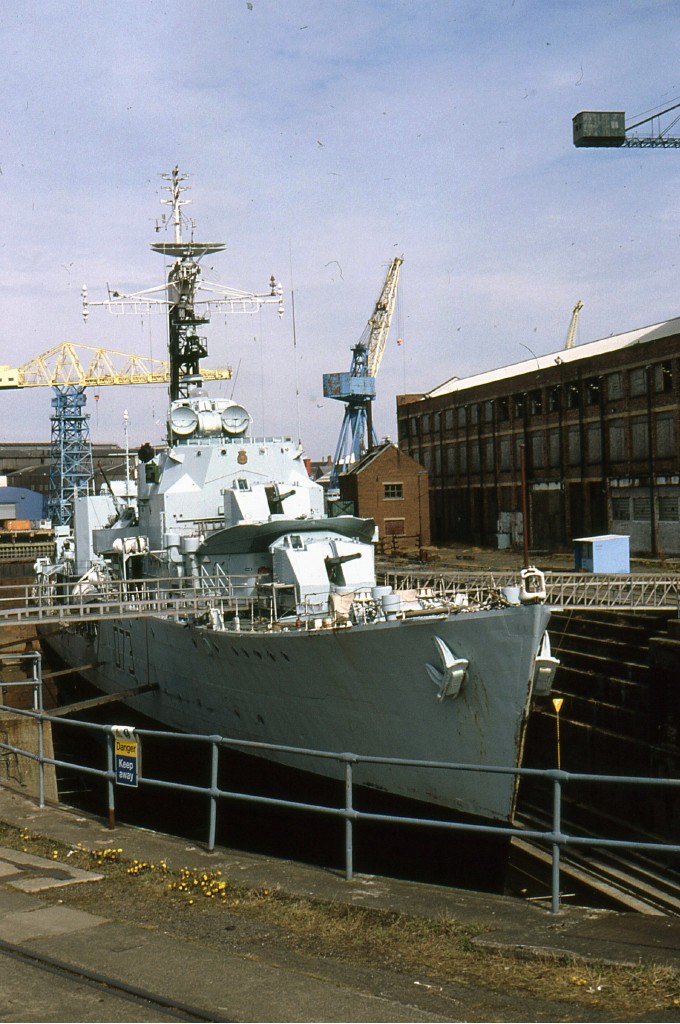Now looking much better but unfortunetly at Chatham dockyard on the Thames, she sure was fast at a service speed of 37 knots from her twin Parsons geared steam turbine engines.
