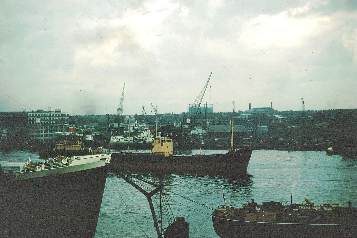 The collier SIR DAVID II at buoys on the River Tyne. (Teesside Branch WSS Albert Weller collection)