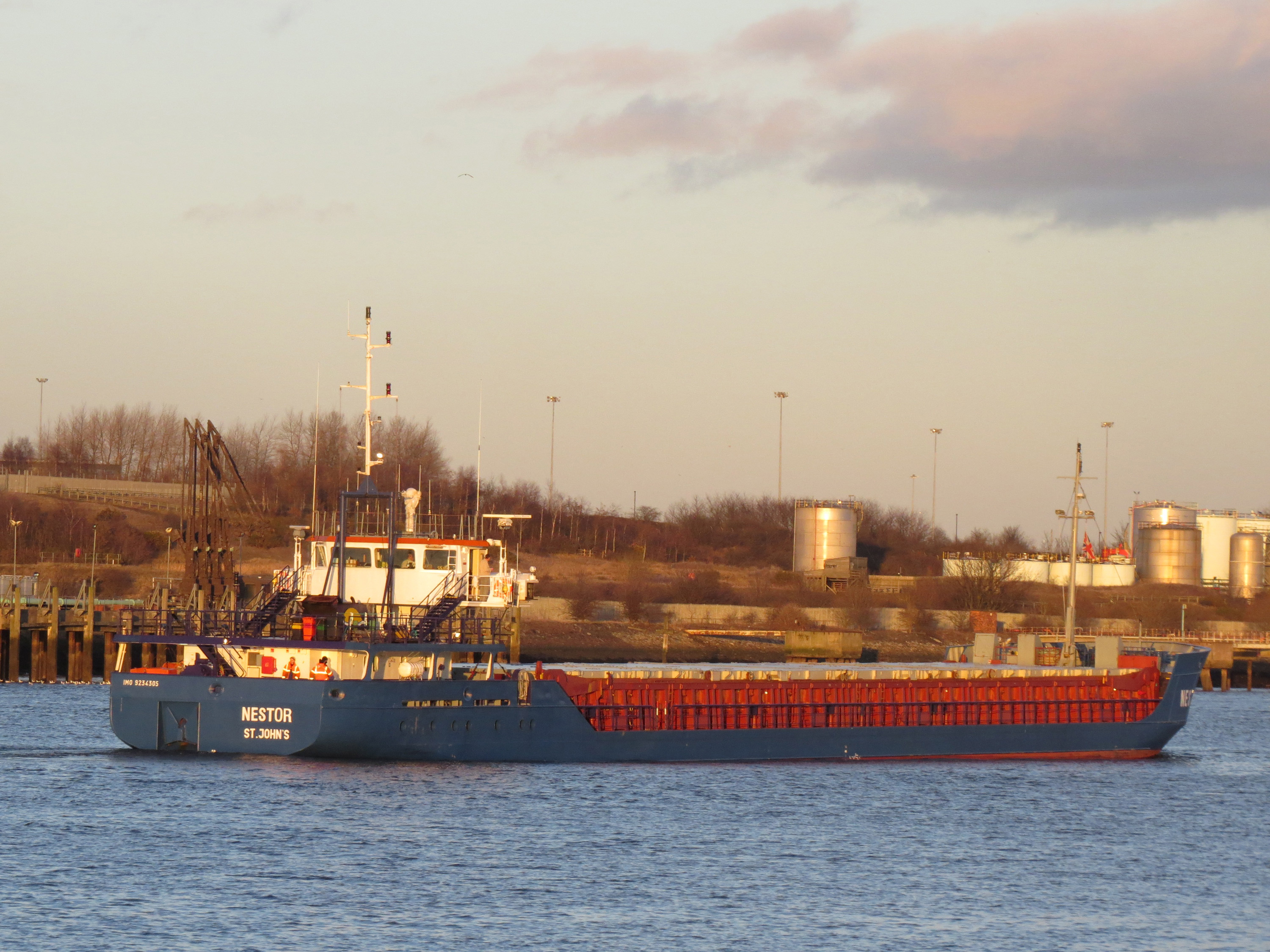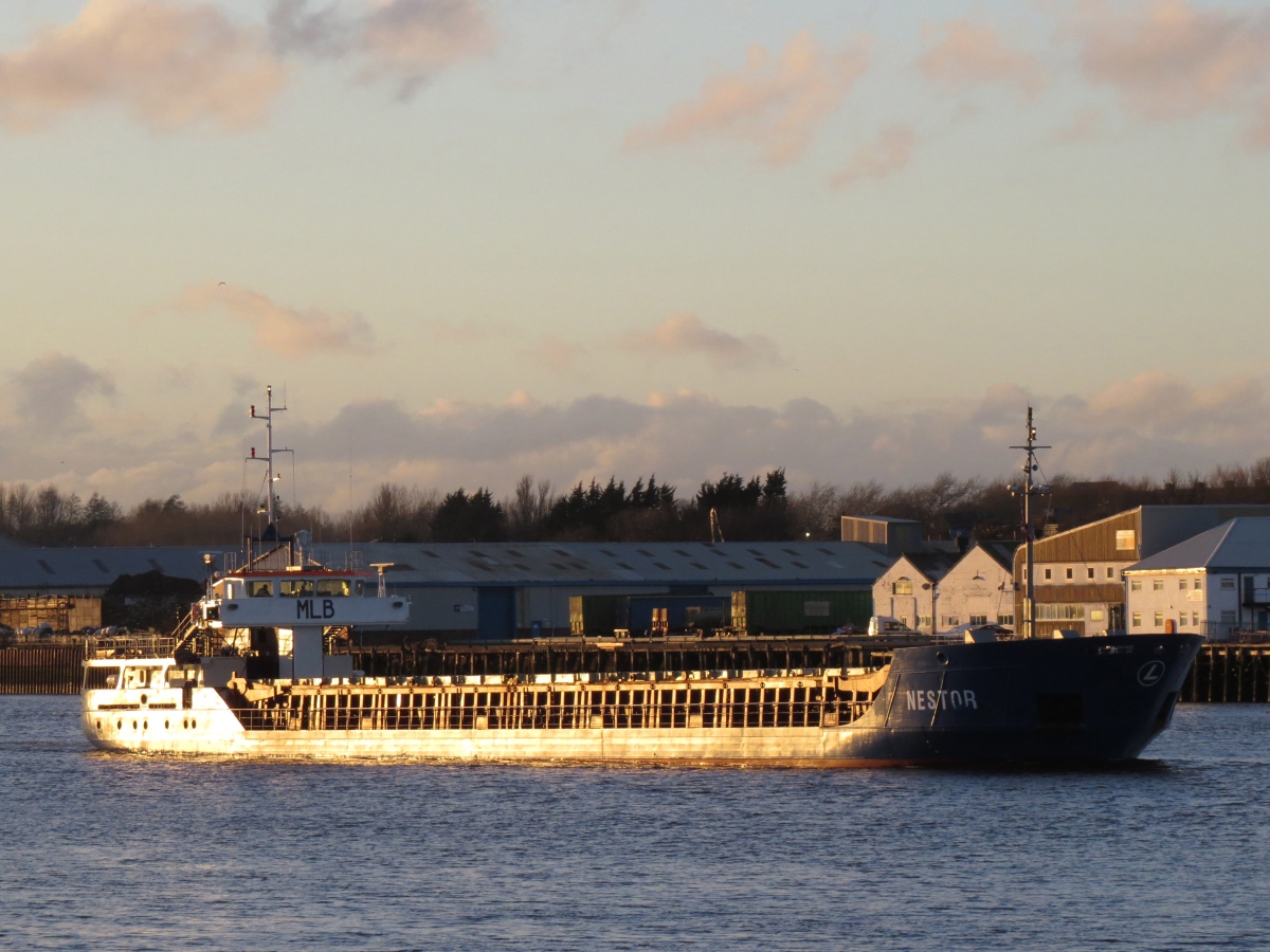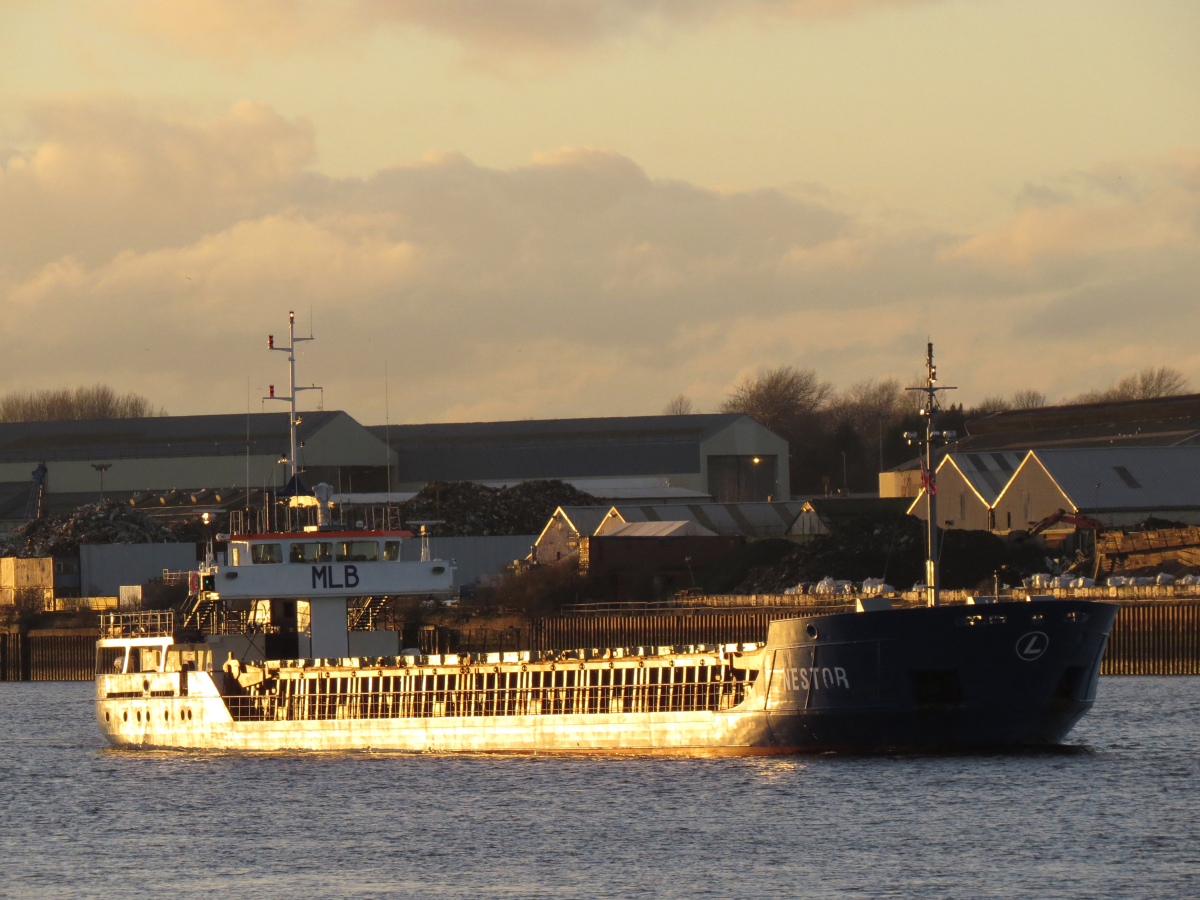 NESTOR outwards in the late afternoon sun from Neptune Quay to Kristiansund 18/02/2016.