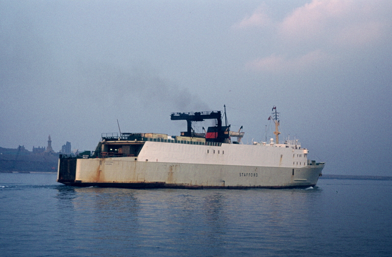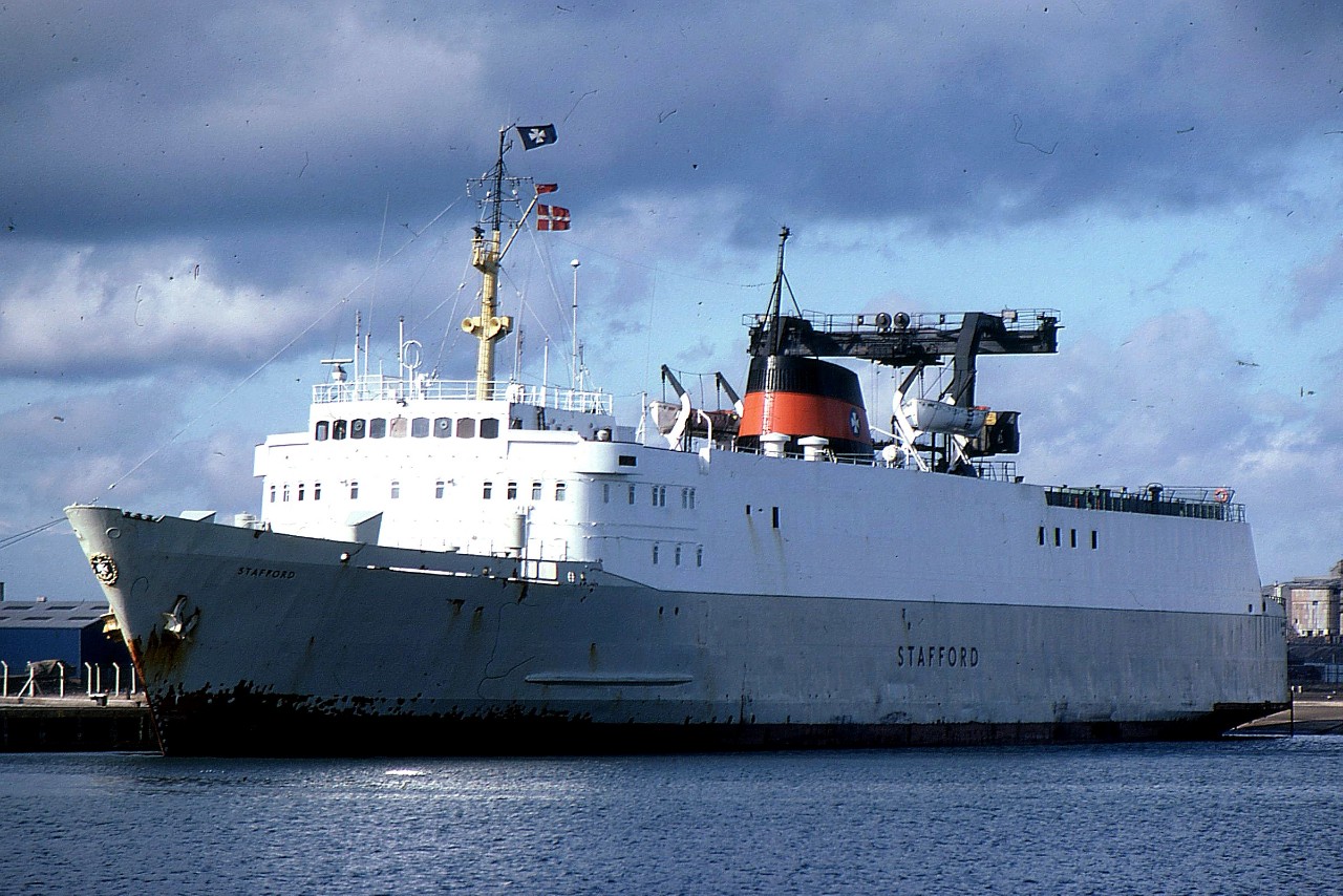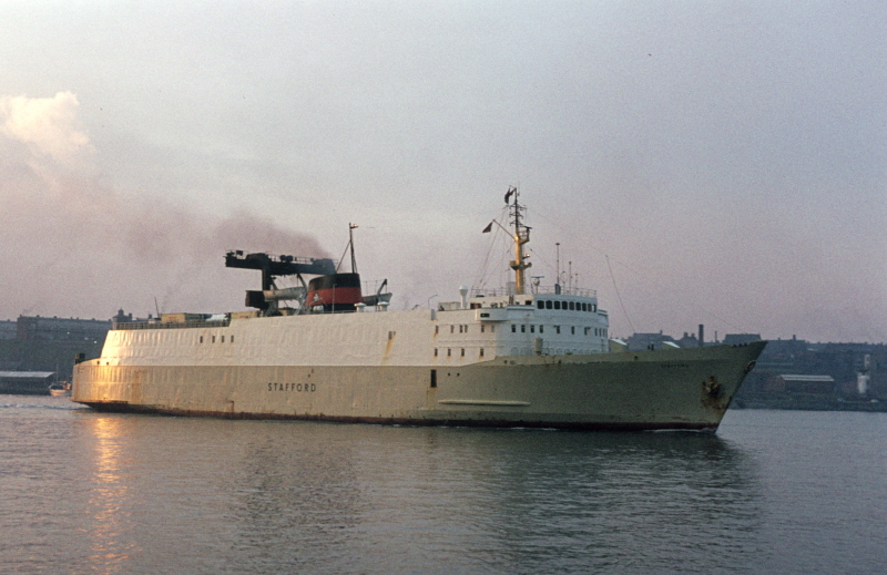 DFDS's Stafford, from Helsingor in 1967, sailing from the Tyne in November 1974.