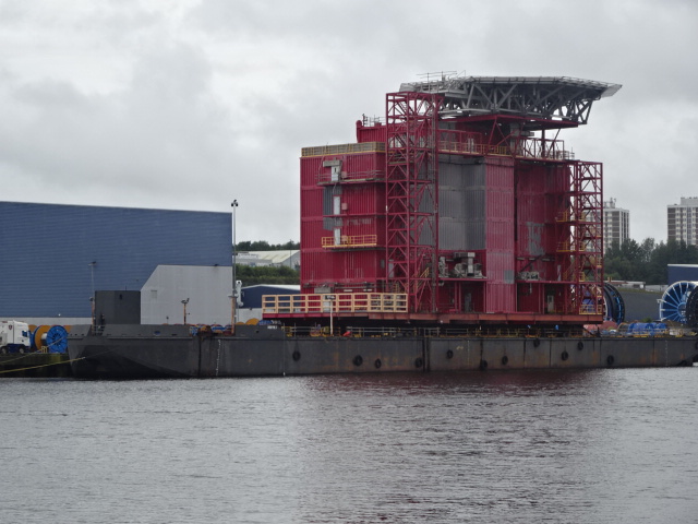 The red structure that has been standing at McNulty's since the old hippo was a wee un is due to be towed away. Nobleman with the barge Robyn S is due on Monday from Rosyth to tow it away.