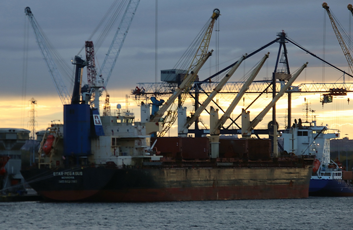 STAR PEGASUS alongside at Riverside Quay in the gloom 23/10/2025. Photo by Richard Athey.