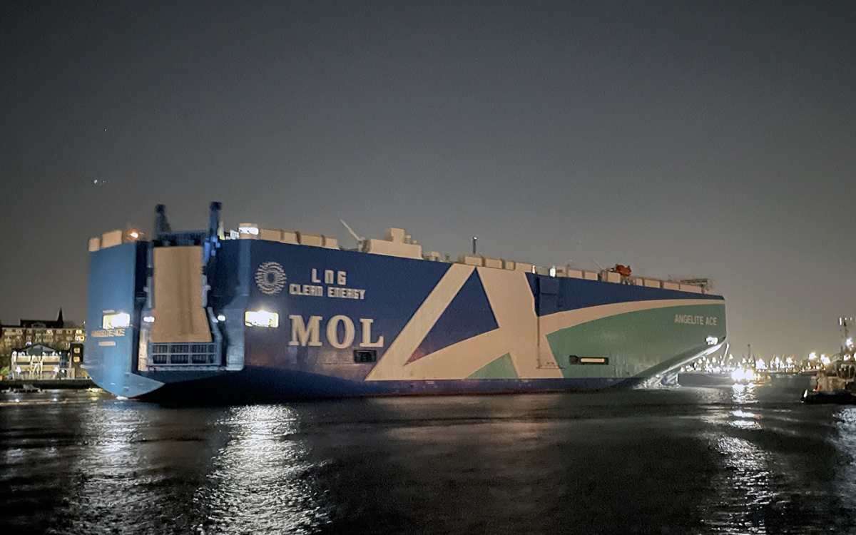 Vehicle carrier ANGELITE ACE inwards past North Shields in the dark 19/12/2025. Photos by Richard Athey.