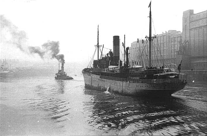 Late 1950's, United Steamship Company breasting off the quay at Newcastle for another load of bacon and butter from Copenghagen.