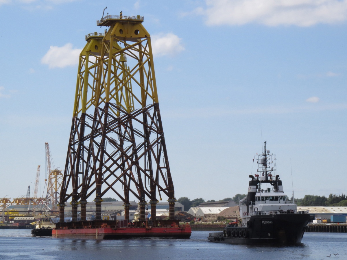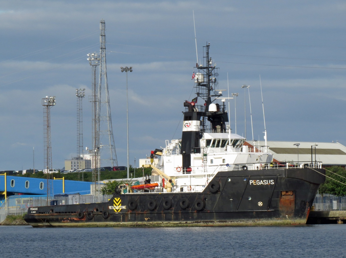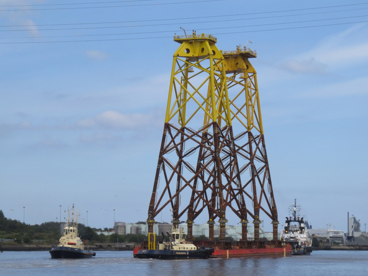 Harms tug PEGASUS inwards to pick up a barge loaded with wind farm bases 10/08/2017.