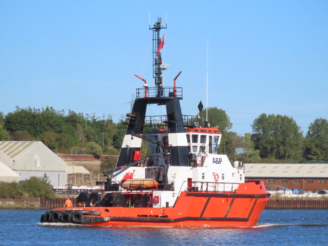 A&P's MERCIA backing up the river to pick up ROROPONTOON4 at the Smulders' yard at Wallsend.
