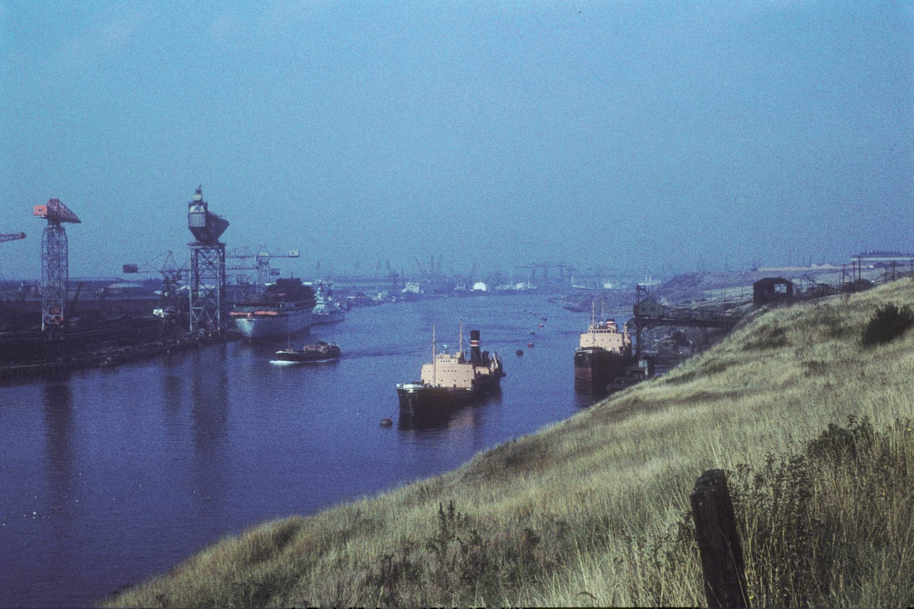Downstream, above Southwark, the twin funnels of the tanker SOLEN.