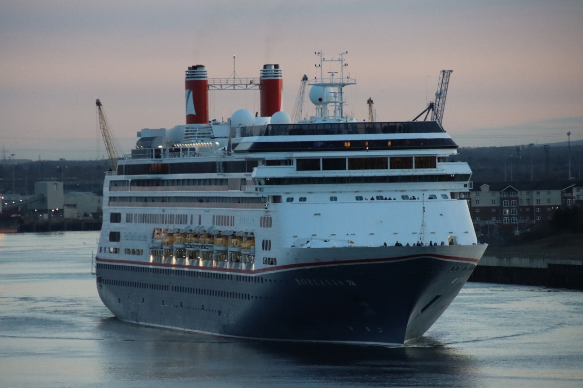 BOREALIS leaving the Tyne in the gloom 15/03/2025. Photos by Richard Athey.