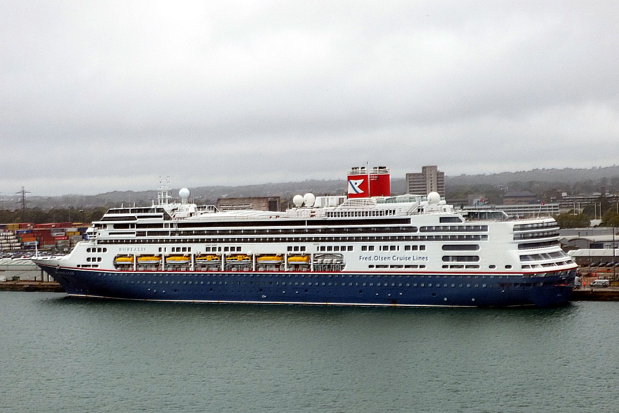 Fred Olsen's Borealis 9122552, completed by Fincantieri in 1997, at Northumbrian Quay last Saturday, 15 March and, as Rotterdam, outbound past Vlaardingen in gloomier weather on 24 June 2017.