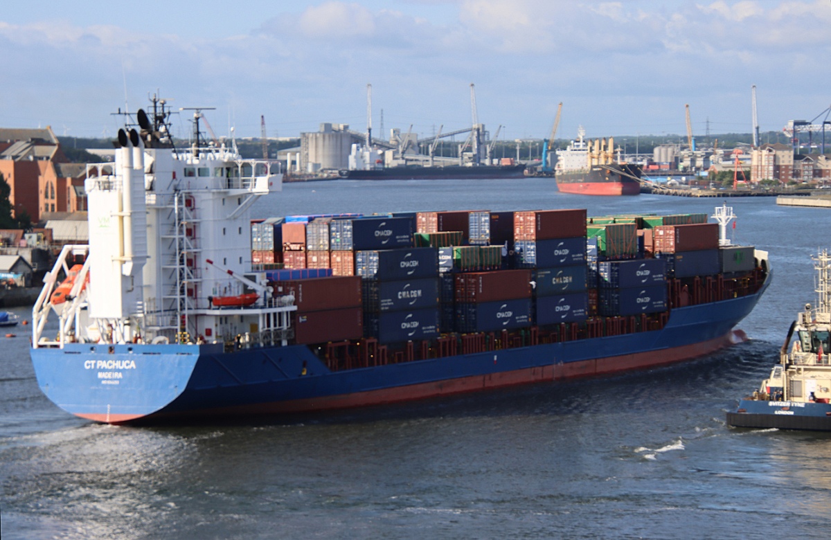 CT PACHUCA inwards on the Tyne in difficult light from the north bank, 01/06/2025. Photos by Richard Athey.