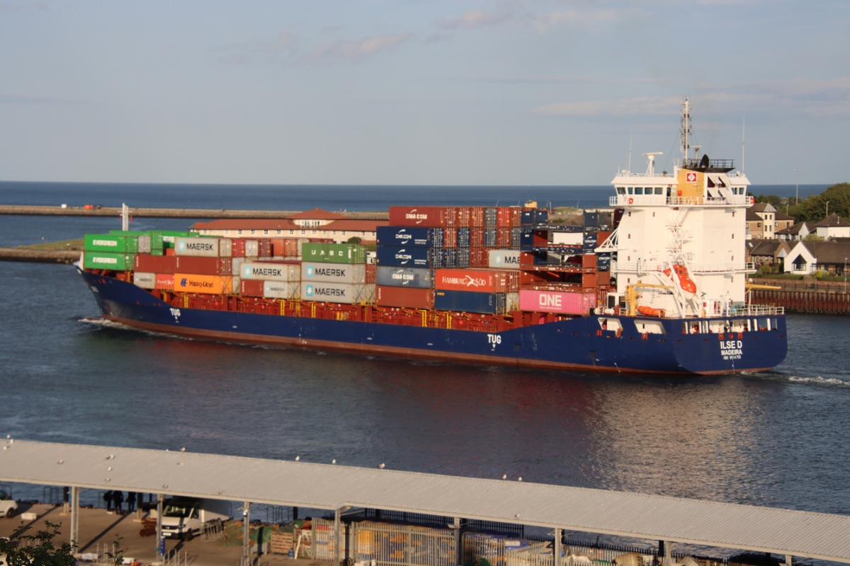 Container ship ILSE D inwards to the Tyne Container Terminal 25/06/2025. Photos by Richard Athey.