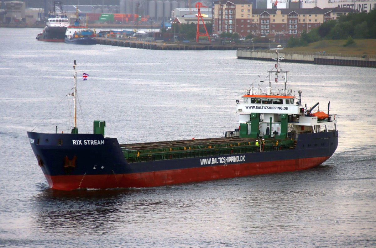 The coaster RIX STREAM leaving the Tyne on Monday evening (30/06/2025). Photos by Richard Athey.