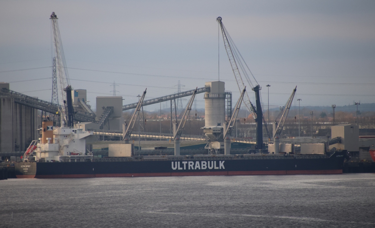Bulk carrier ULTRA SPIRIT alongside at Riverside Quay 15/02/2026. Photo by Richard Athey.