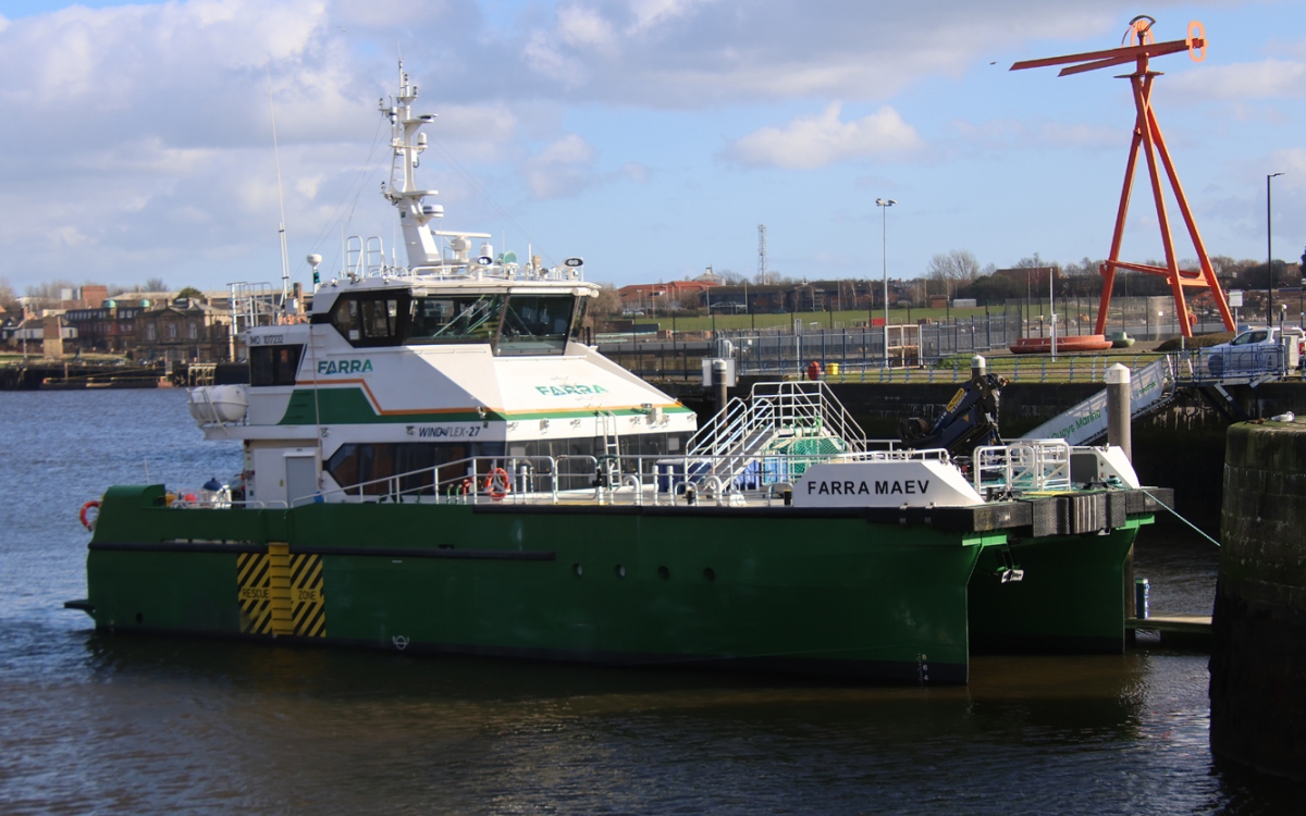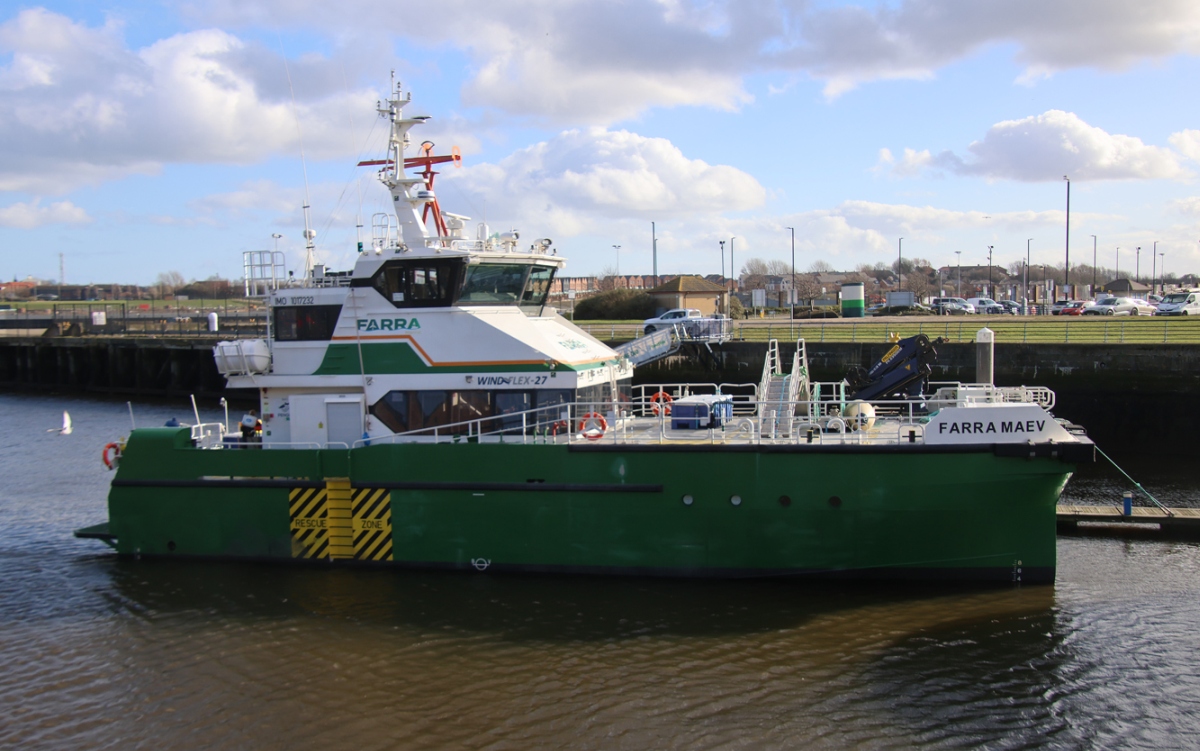 Crew vessel FARRA MAEV alongside in Royal Quays 22/02/2026. Photo by Richard Athey.
