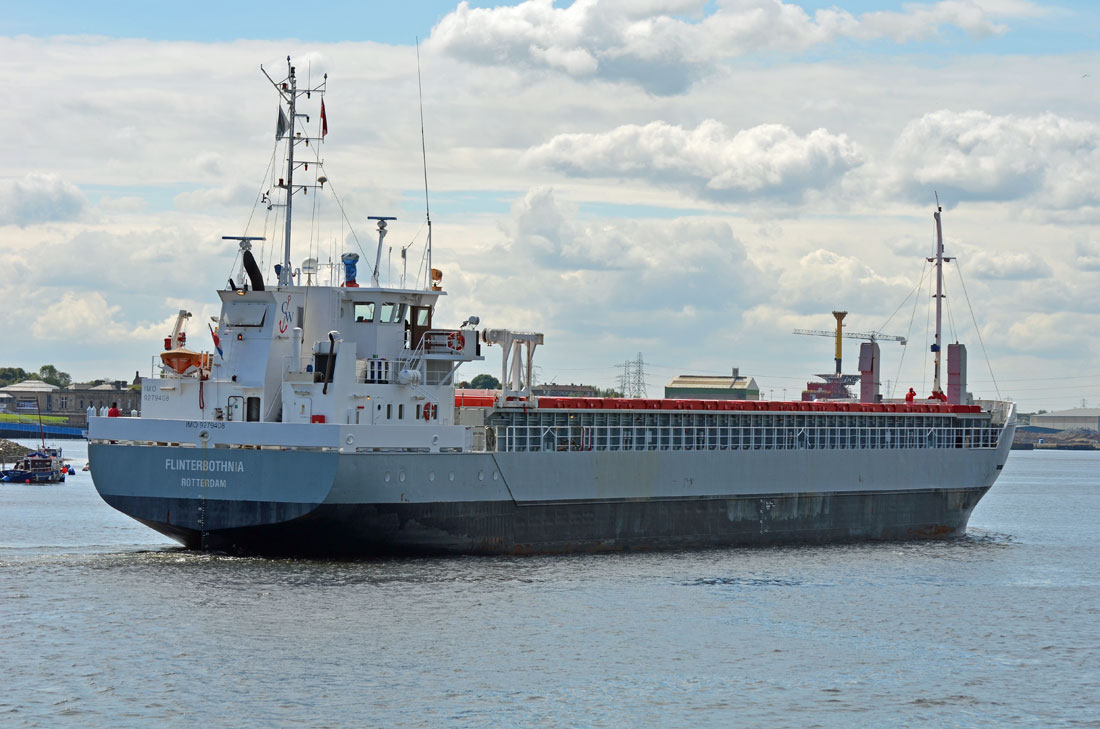 FLINTERBOTHNIA inbound to the Port of Tyne, North East England from Esbjerg, Denmark on 31st July 2012 and bound for the former Swan Hunters Wallsend Yard to pick up a cable reel. Photographed from Western Quay, North Shields.