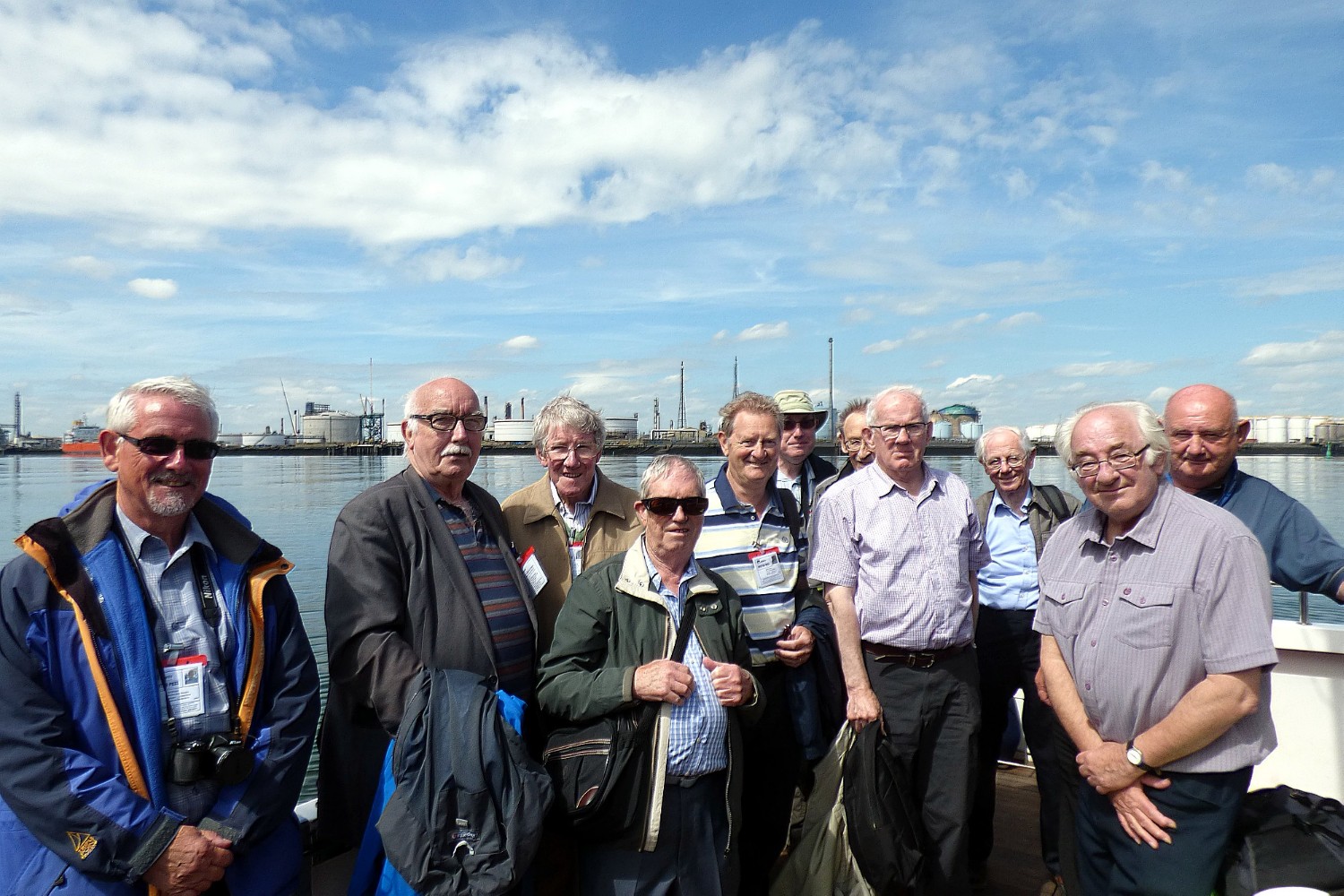 The obligatory group photo of members of the Teesside and Tyneside branches of the World Ship Society after they had enjoyed a Tees and Hartlepool river trip on 23 June 2016. Our grateful thanks to PD Ports for this facility, and particular thanks to Tees Harbour Master, Capt. Jerry Drewitt (our Teesside Branch honorary president), and his secretary Sue Green for all the arrangements. Thanks also to the crew of the HIGH TIDE ADVENTURE and to Assistant Harbour Master Ian Gordon (who has come along to several of our meetings to show his ship photos) for accompanying us, and then showing several members the Port Operations Control Room afterwards.