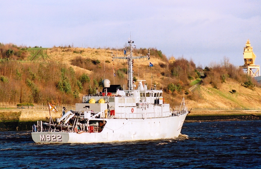 Belgian minesweeper MYOSOTIS M922 leaves Newcastle after a courtesy visit. Why they named this one after sick rabbits I do not know, or is that a problem with my eyesight?