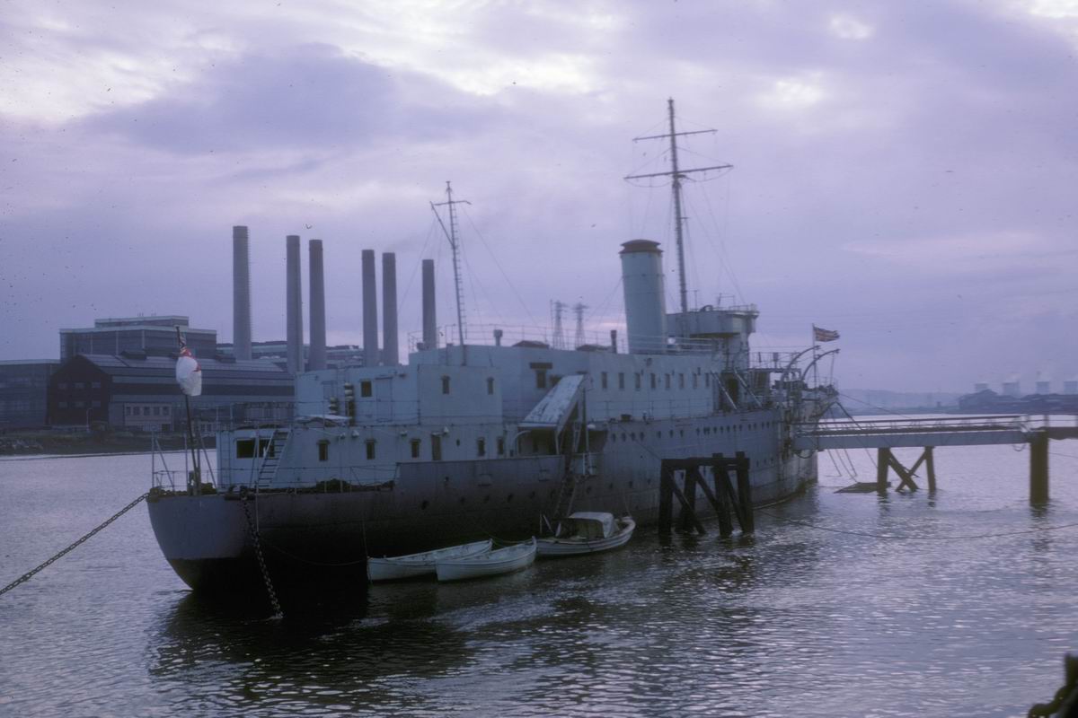 Calliope took the name Helicon in 1915 to release the name for a "C" class cruiser. When the cruiser was scrapped in 1931 Calliope took her name back. She was berthed at Elswick throughout her service with the reserves except for a period during WW2 when she was moved to the Albert Edward Dock, North Shields (1939 to 12 August 1946) to act as the RN Base ship for the Tyne. She was replaced by the former sloop Falmouth which took the name Calliope serving until 1968 when Tyne Division moved ashore to South Shore Road, Gateshead.
