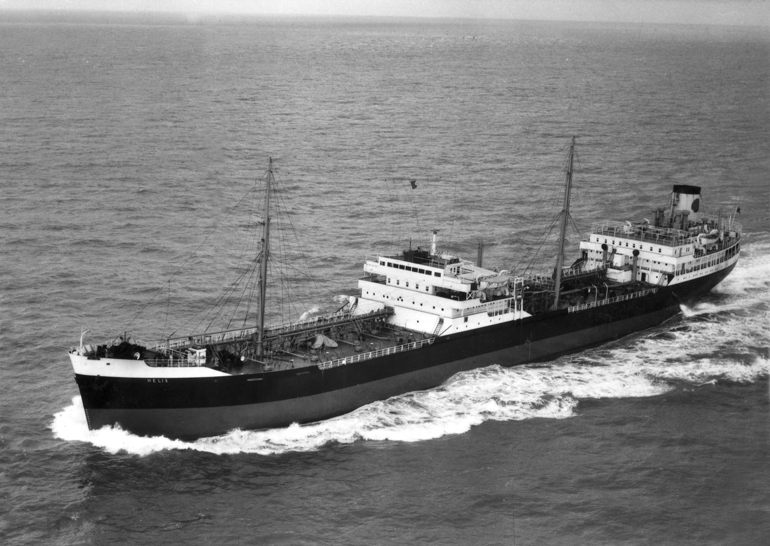 HELIX had a crew of 52 and was fitted with one HP and one LP Turbine by Wallsend Slipway with Turbo-electric drive giving a speed of 14.75 Knots on 7,500 shp.