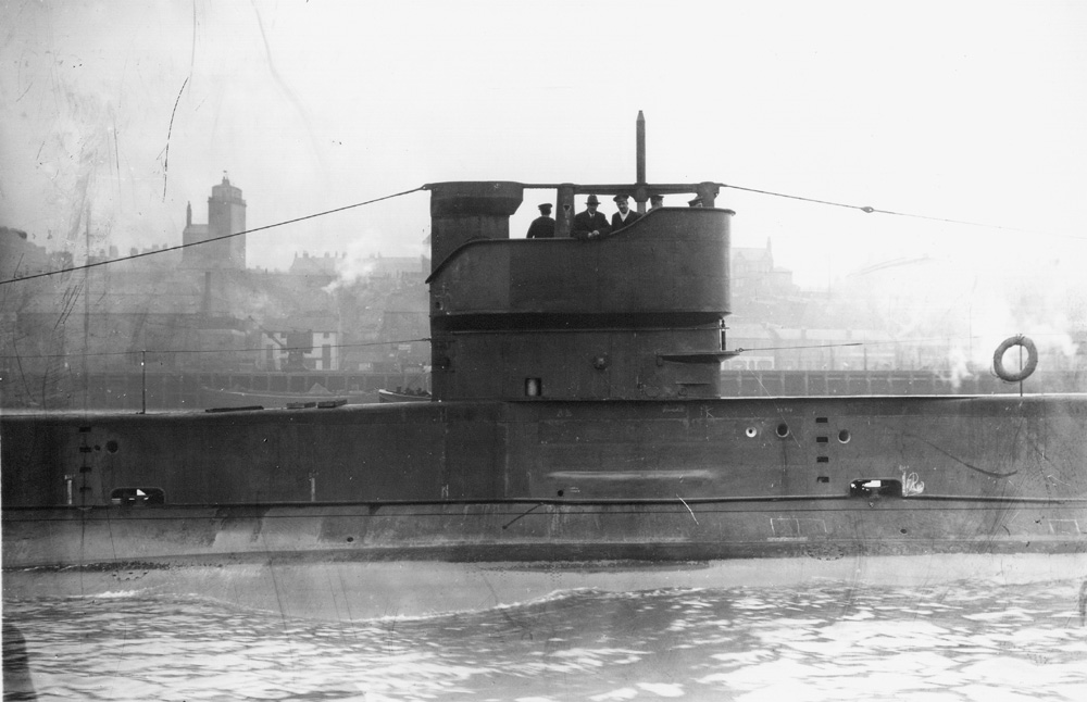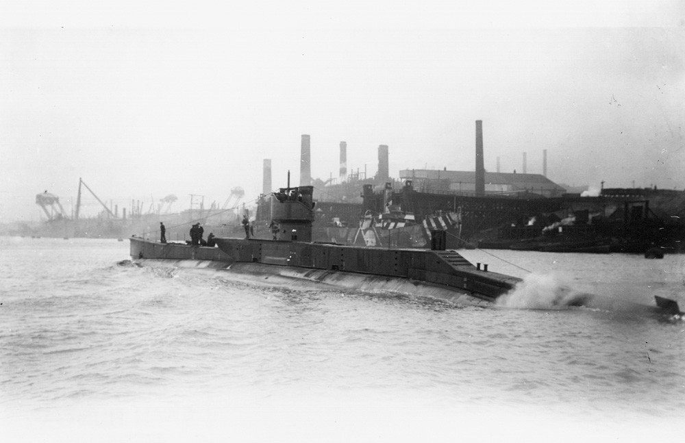 L5 heading down the Tyne about march 1918 on trials manned by Swan Hunters builders trials crew with no ensign. Still in builders undercoat with a few interesting features visible.
