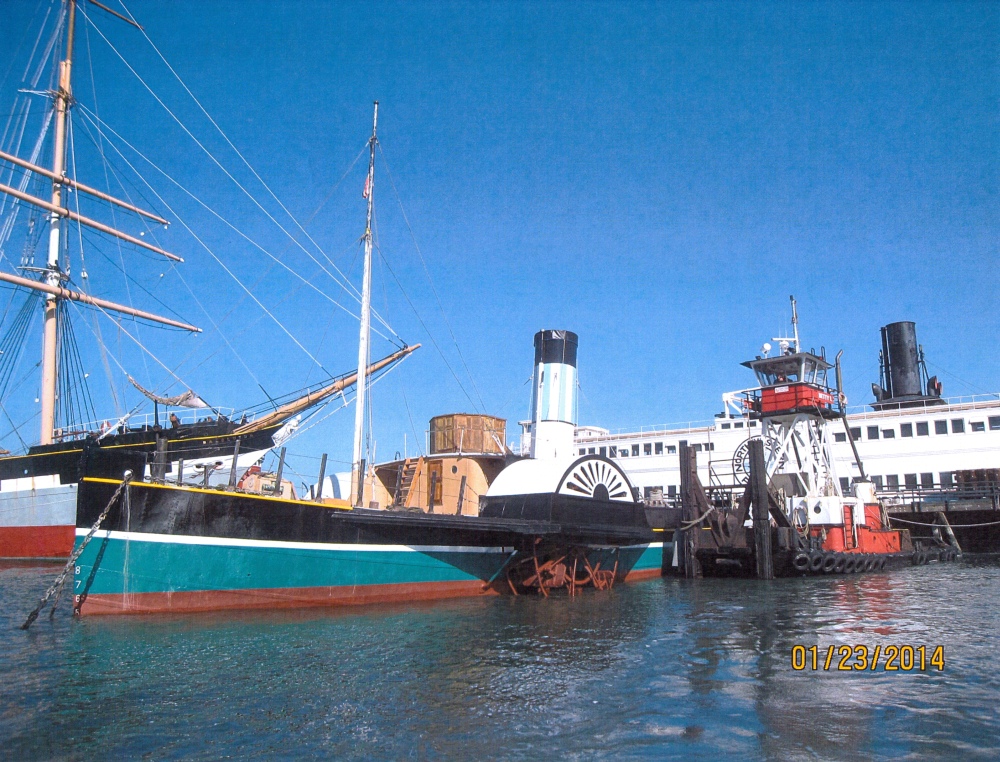 "You will be glad to hear that we just completed a $400,000 overhaul of the tug. She has new inserts and doubler plates below the water line, the steel bulwarks have been repaired and the wooden paddle boxes are restored. She has been painted all the way up to the top of the stack.