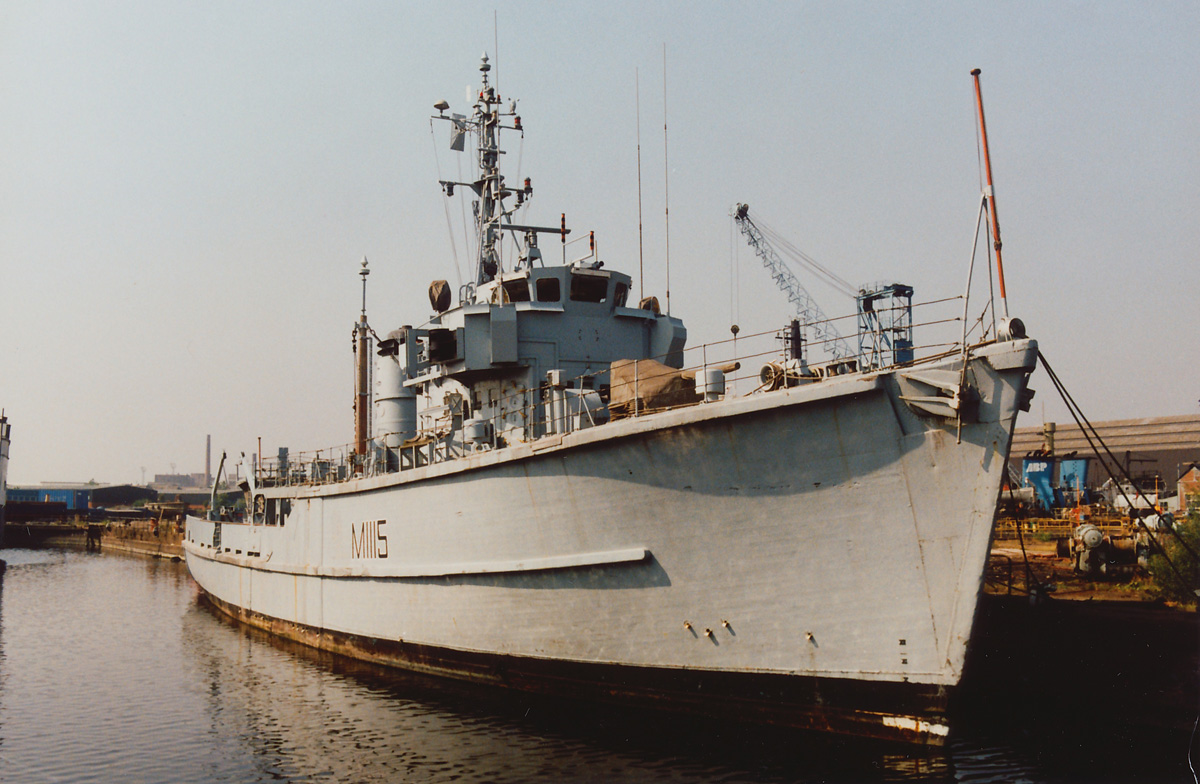 BRONINGTON built by Cook, Welton & Gemmell (854) in 1954 as HMS HUMBER, seen at Manchester Dry Docks in 9/1991.